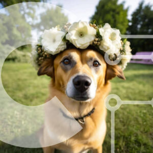 Intra Συλλεκτικό Ξύλινο Παζλ Plywood 4mm - Καφέ σκυλί με λουλουδάτη σύνθεση στο κεφάλι στο γρασίδι Σε Ξύλινο Κουτί - Διαστάσεις: 10x10 cm – 25 κομμάτια