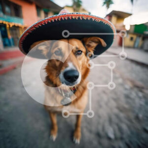 Intra Συλλεκτικό Ξύλινο Παζλ Plywood 4mm - Καφέ σκυλί με καπέλο σομπρέρο στη μεξικανική οδό Σε Ξύλινο Κουτί - Διαστάσεις: 10x10 cm – 25 κομμάτια
