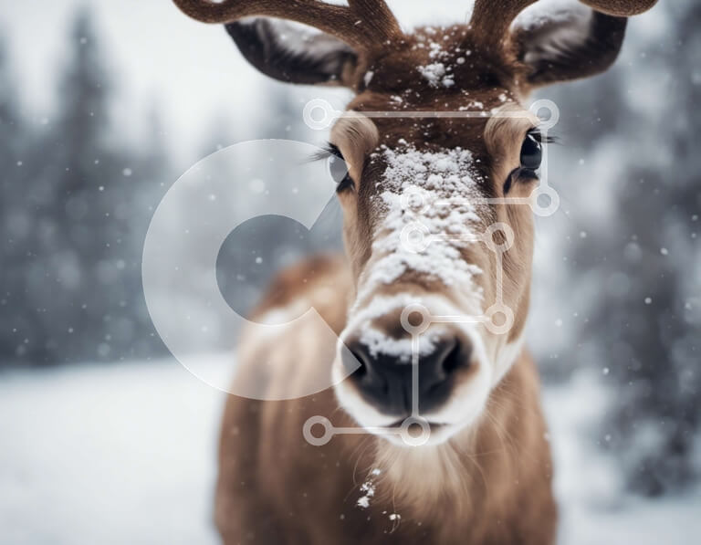 Intra Συλλεκτικό Ξύλινο Παζλ Plywood 4mm - Καφετιά ελάφια στο χιόνι με χιονισμένα ελαφοκέρατα Σε Ξύλινο Κουτί - Διαστάσεις: 10x10 cm – 25 κομμάτια