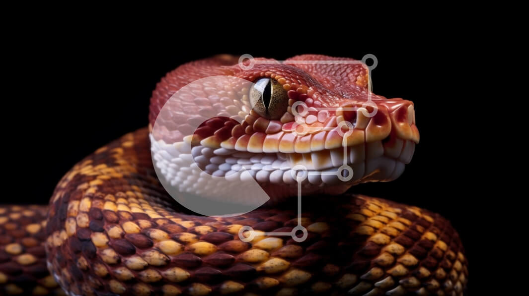 Intra Συλλεκτικό Ξύλινο Παζλ Plywood 4mm - Κοντινή εικόνα του κεφαλιού ενός φιδιού με κόκκινο και κίτρινο σχέδιο Σε Ξύλινο Κουτί - Διαστάσεις: 10x10 cm – 25 κομμάτια