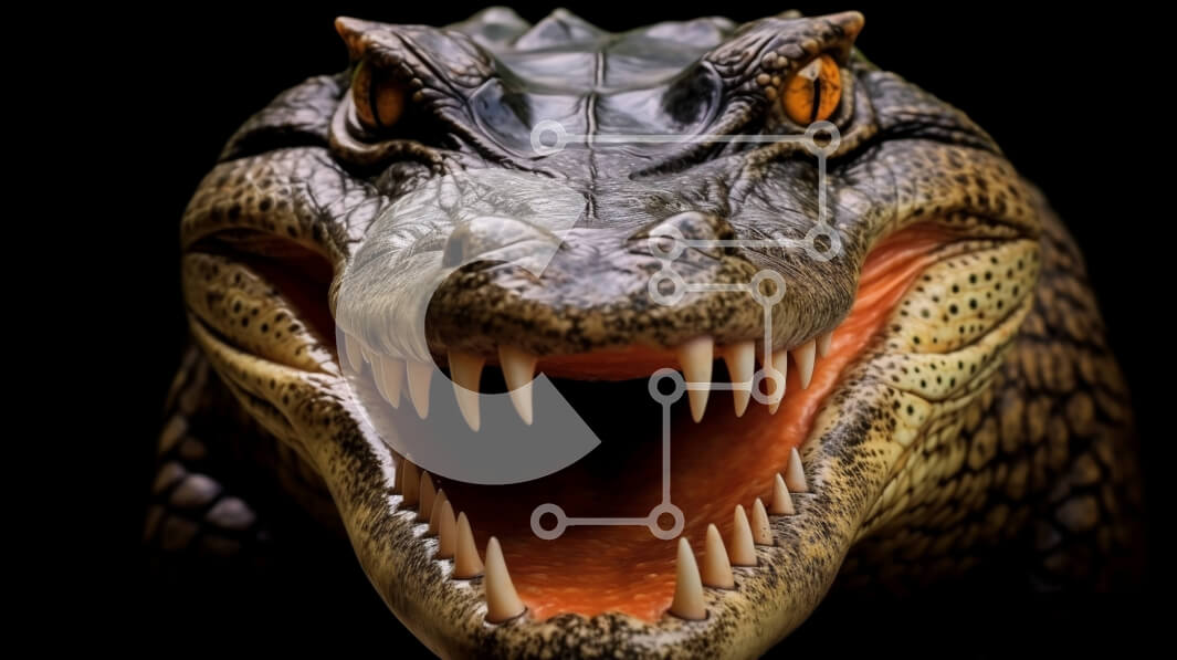 Intra Συλλεκτικό Ξύλινο Παζλ Plywood 4mm - Κοντινή εικόνα του κεφαλιού ενός κροκόδειλου με ανοιχτό στόμα και αιχμηρά δόντια Σε Ξύλινο Κουτί - Διαστάσεις: 10x10 cm – 25 κομμάτια