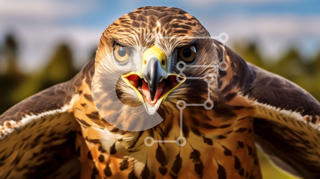 Intra Συλλεκτικό Ξύλινο Παζλ Plywood 4mm - Κοντινή εικόνα του άγριου γερακιού με αιχμηρά νύχια και φτερά ανοιχτά Σε Ξύλινο Κουτί - Διαστάσεις: 10x10 cm – 25 κομμάτια