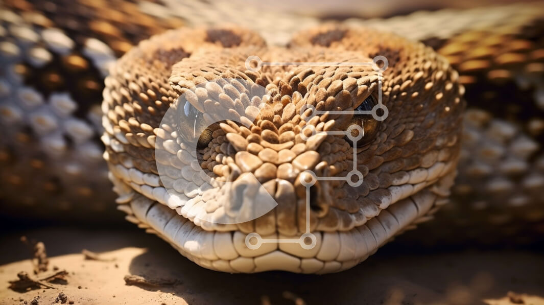 Intra Συλλεκτικό Ξύλινο Παζλ Plywood 4mm - Κοντινή εικόνα του κεφαλιού ενός κροταλία Σε Ξύλινο Κουτί - Διαστάσεις: 10x10 cm – 25 κομμάτια