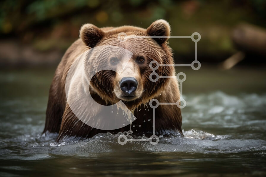 Intra Συλλεκτικό Ξύλινο Παζλ Plywood 4mm - Κοντινή εικόνα της καφέ αρκούδας στο νερό Σε Ξύλινο Κουτί - Διαστάσεις: 10x10 cm – 25 κομμάτια