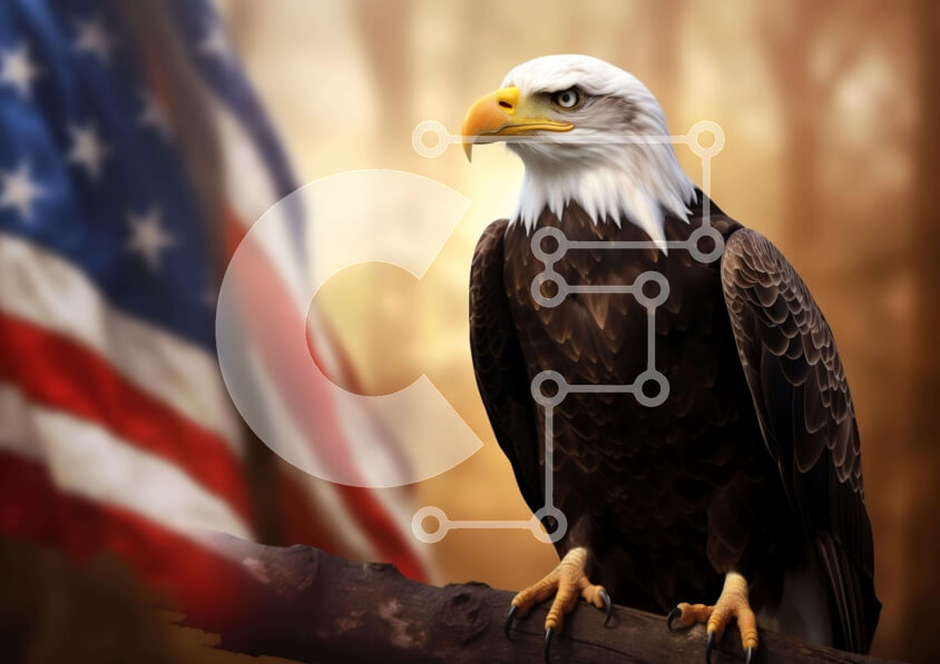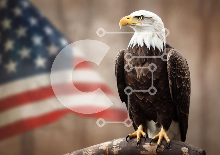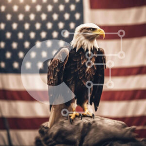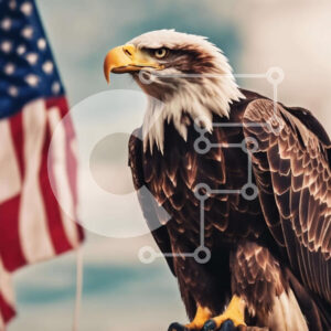 Intra Συλλεκτικό Ξύλινο Παζλ Plywood 4mm - Αετός σκαρφαλωμένος σε μια θέση με φόντο την αμερικανική σημαία Σε Ξύλινο Κουτί - Διαστάσεις: 10x10 cm – 25 κομμάτια