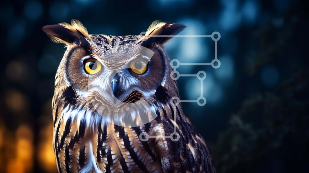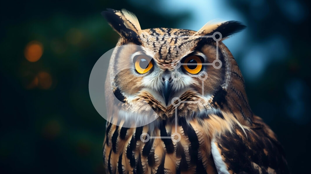 Intra Συλλεκτικό Ξύλινο Παζλ Plywood 4mm - Κοντινό πλάνο μιας κουκουβάγιας με μεγάλα κίτρινα μάτια στο σκοτεινό δάσος Σε Ξύλινο Κουτί - Διαστάσεις: 10x10 cm – 25 κομμάτια