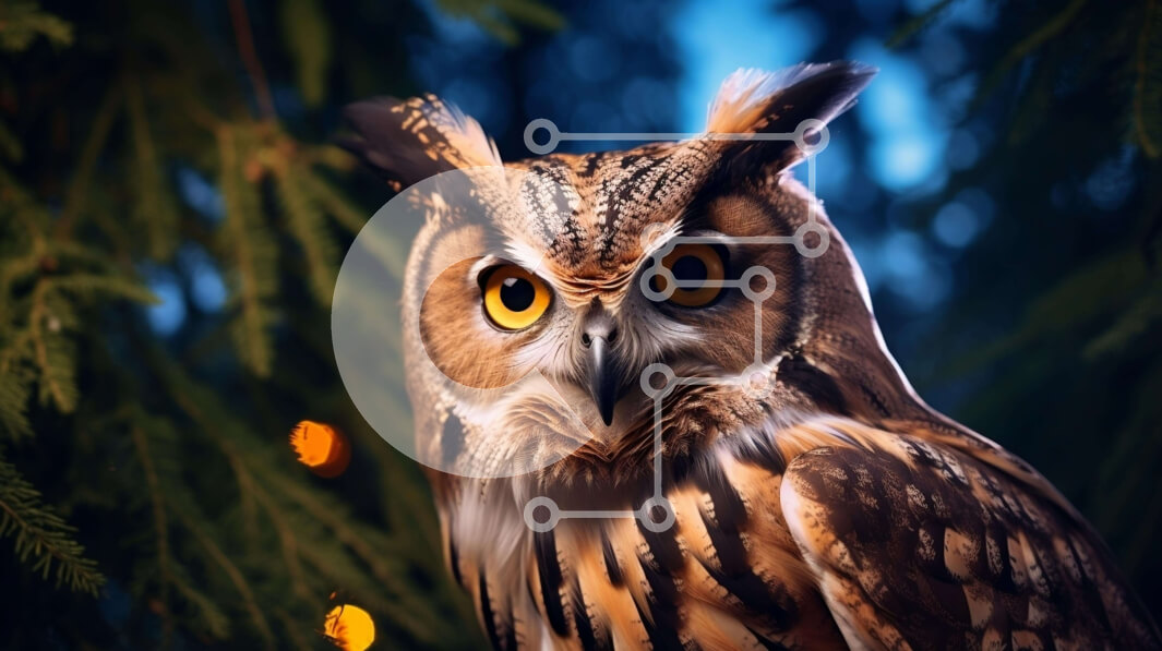 Intra Συλλεκτικό Ξύλινο Παζλ Plywood 4mm - Κοντινό πλάνο μιας κουκουβάγιας με μεγάλα κίτρινα μάτια στο δάσος Σε Ξύλινο Κουτί - Διαστάσεις: 10x10 cm – 25 κομμάτια