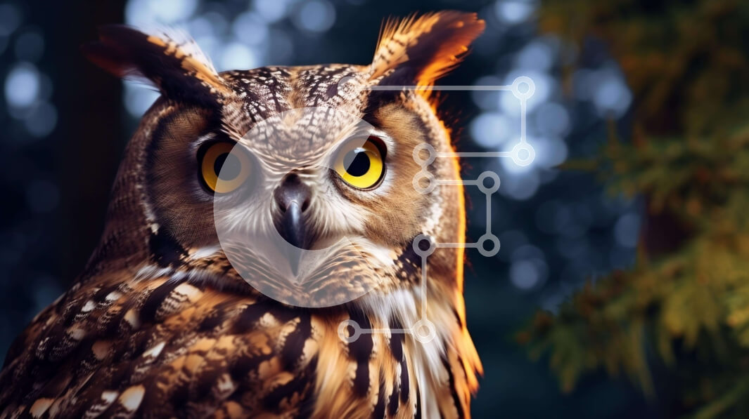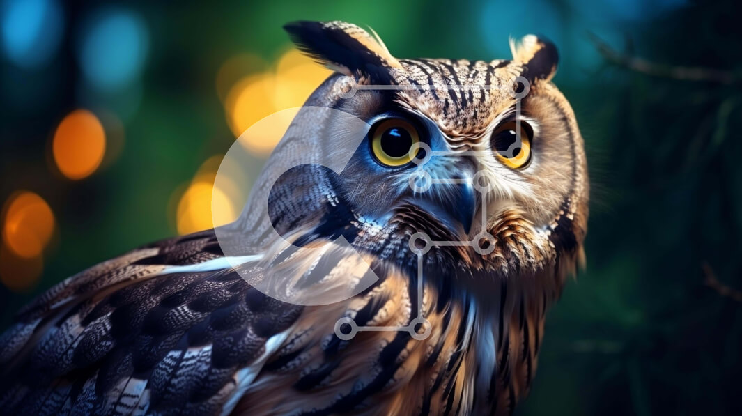 Intra Συλλεκτικό Ξύλινο Παζλ Plywood 4mm - Κοντινό πλάνο μιας κουκουβάγιας στο δάσος με φωτεινά κίτρινα μάτια Σε Ξύλινο Κουτί - Διαστάσεις: 10x10 cm – 25 κομμάτια
