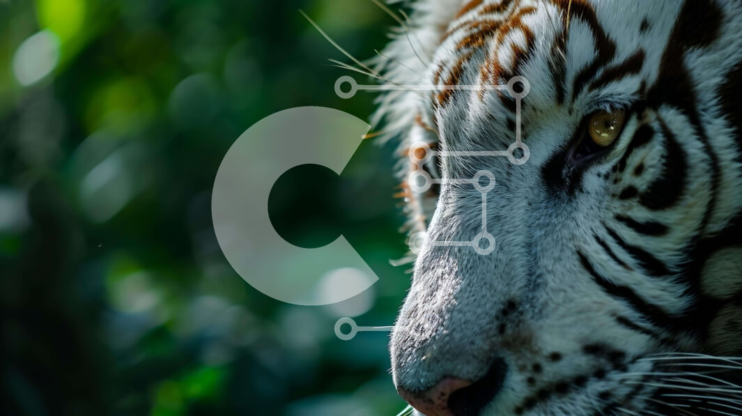 Intra Συλλεκτικό Ξύλινο Παζλ Plywood 4mm - Κοντινό πλάνο μιας λευκής τίγρης στο δάσος Σε Ξύλινο Κουτί - Διαστάσεις: 10x10 cm – 25 κομμάτια