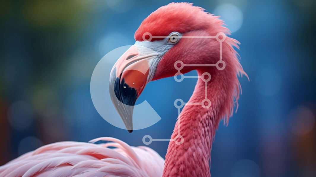 Intra Συλλεκτικό Ξύλινο Παζλ Plywood 4mm - Κοντινό πλάνο του κεφαλιού και του λαιμού του Pink Flamingo Σε Ξύλινο Κουτί - Διαστάσεις: 10x10 cm – 25 κομμάτια