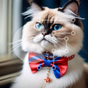 Intra Συλλεκτικό Ξύλινο Παζλ Plywood 4mm - Αξιολάτρευτη γάτα με μπλε μάτια και παπιγιόν Σε Ξύλινο Κουτί - Διαστάσεις: 10x10 cm – 25 κομμάτια