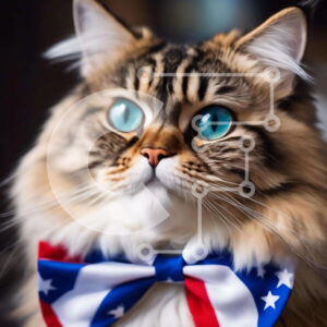 Intra Συλλεκτικό Ξύλινο Παζλ Plywood 4mm - Αξιολάτρευτη γάτα με παπιγιόν με αμερικανική σημαία Σε Ξύλινο Κουτί - Διαστάσεις: 10x10 cm – 25 κομμάτια