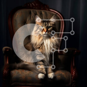 Intra Συλλεκτικό Ξύλινο Παζλ Plywood 4mm - Αξιολάτρευτη γάτα που κάθεται σε μια περίτεχνη καρέκλα σε ένα δωμάτιο με χαμηλό φωτισμό Σε Ξύλινο Κουτί - Διαστάσεις: 10x10 cm – 25 κομμάτια