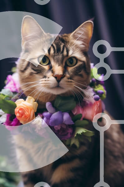 Intra Συλλεκτικό Ξύλινο Παζλ Plywood 4mm - Αξιολάτρευτη γάτα με πολύχρωμο λουλουδάτο στεφάνι Σε Ξύλινο Κουτί - Διαστάσεις: 10x10 cm – 25 κομμάτια