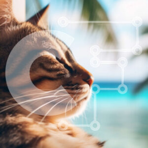 Intra Συλλεκτικό Ξύλινο Παζλ Plywood 4mm - Αξιολάτρευτη γάτα που απολαμβάνει τη θέα μιας τροπικής παραλίας Σε Ξύλινο Κουτί - Διαστάσεις: 10x10 cm – 25 κομμάτια