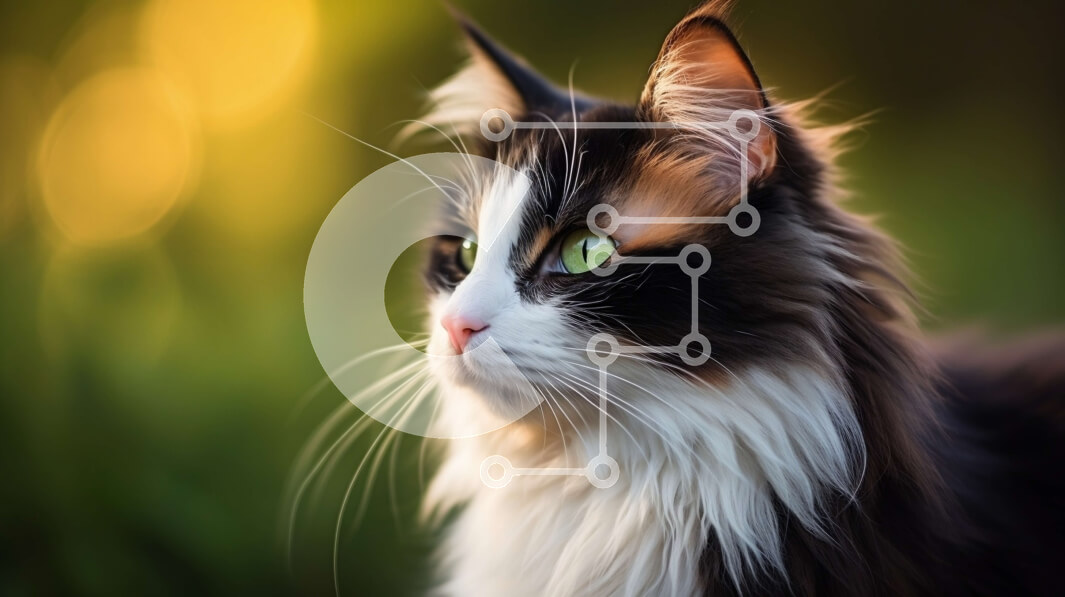 Intra Συλλεκτικό Ξύλινο Παζλ Plywood 4mm - Κοντινό πλάνο του προσώπου οικιακής γάτας με λευκό και μαύρο παλτό Σε Ξύλινο Κουτί - Διαστάσεις: 10x10 cm – 25 κομμάτια