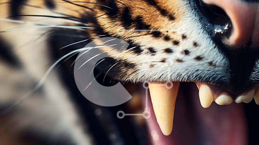 Intra Συλλεκτικό Ξύλινο Παζλ Plywood 4mm - Κοντινό πλάνο του στόματος της τίγρης σε επιθετική εμφάνιση Σε Ξύλινο Κουτί - Διαστάσεις: 10x10 cm – 25 κομμάτια