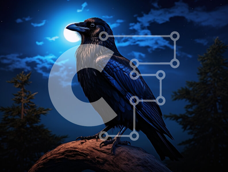 Intra Συλλεκτικό Ξύλινο Παζλ Plywood 4mm - Κοράκι που στέκεται σε ένα κούτσουρο κάτω από το φως του φεγγαριού Σε Ξύλινο Κουτί - Διαστάσεις: 10x10 cm – 25 κομμάτια