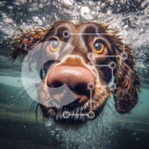 Intra Συλλεκτικό Ξύλινο Παζλ Plywood 4mm - Αξιολάτρευτη εικόνα ενός καφέ σκύλου υποβρύχιο με το στόμα ανοιχτό Σε Ξύλινο Κουτί - Διαστάσεις: 10x10 cm – 25 κομμάτια