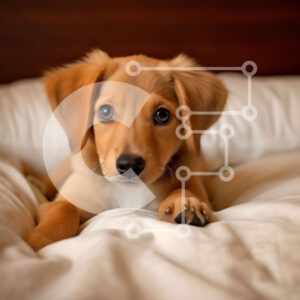 Intra Συλλεκτικό Ξύλινο Παζλ Plywood 4mm - Αξιολάτρευτη εικόνα ενός καφέ σκύλου σε ένα κρεβάτι με λευκά σεντόνια Σε Ξύλινο Κουτί - Διαστάσεις: 10x10 cm – 25 κομμάτια