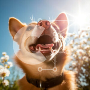 Intra Συλλεκτικό Ξύλινο Παζλ Plywood 4mm - Αξιολάτρευτη εικόνα ενός καφέ σκύλου που χαμογελά σε ένα χωράφι με λευκά λουλούδια Σε Ξύλινο Κουτί - Διαστάσεις: 10x10 cm – 25 κομμάτια