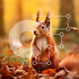 Intra Συλλεκτικό Ξύλινο Παζλ Plywood 4mm - Αξιολάτρευτη εικόνα ενός κόκκινου σκίουρου σε ένα σωρό από φθινοπωρινά φύλλα Σε Ξύλινο Κουτί - Διαστάσεις: 10x10 cm – 25 κομμάτια