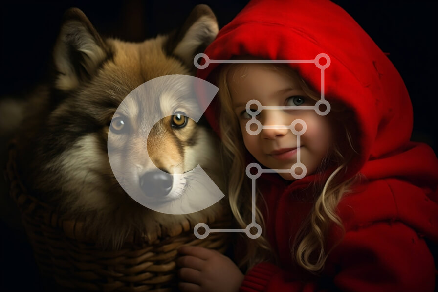 Intra Συλλεκτικό Ξύλινο Παζλ Plywood 4mm - Αξιολάτρευτη εικόνα ενός νεαρού κοριτσιού και ενός λύκου σε ένα καλάθι Σε Ξύλινο Κουτί - Διαστάσεις: 10x10 cm – 25 κομμάτια