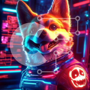 Intra Συλλεκτικό Ξύλινο Παζλ Plywood 4mm - Corgi σε διαστημική στολή με νέον φόντο Σε Ξύλινο Κουτί - Διαστάσεις: 10x10 cm – 25 κομμάτια