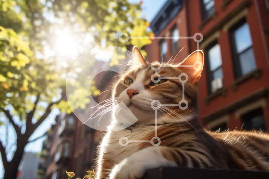 Intra Συλλεκτικό Ξύλινο Παζλ Plywood 4mm - Αξιολάτρευτη εικόνα μιας ριγέ γάτας μπροστά από ένα κτήριο από τούβλα Σε Ξύλινο Κουτί - Διαστάσεις: 10x10 cm – 25 κομμάτια