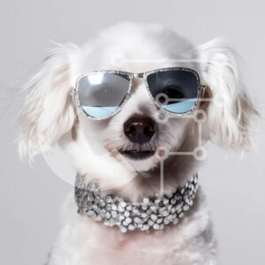 Intra Συλλεκτικό Ξύλινο Παζλ Plywood 4mm - Αξιολάτρευτη εικόνα μικρού λευκού σκύλου με γυαλιά ηλίου και ασημένιο κολάρο Σε Ξύλινο Κουτί - Διαστάσεις: 10x10 cm – 25 κομμάτια