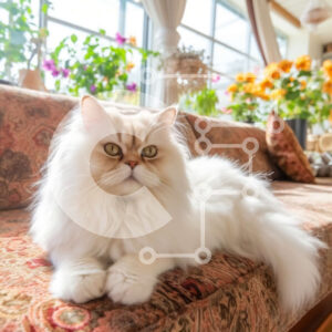 Intra Συλλεκτικό Ξύλινο Παζλ Plywood 4mm - Αξιολάτρευτη εικόνα μιας χνουδωτής λευκής γάτας που κάθεται σε έναν καναπέ με λουλούδια στο φόντο Σε Ξύλινο Κουτί - Διαστάσεις: 10x10 cm – 25 κομμάτια