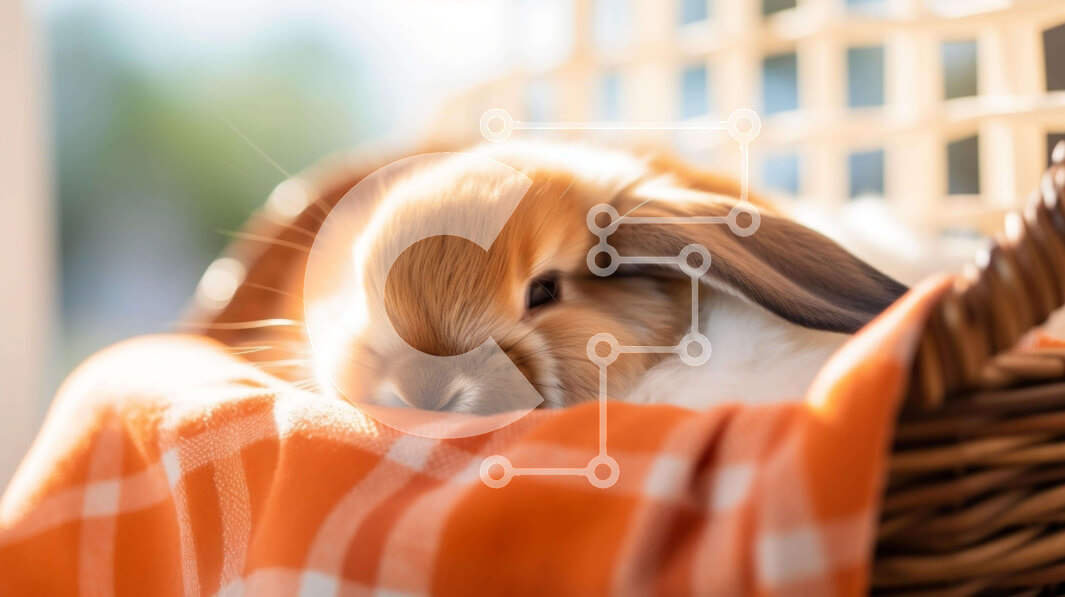 Intra Συλλεκτικό Ξύλινο Παζλ Plywood 4mm - Χαριτωμένο καφέ και πορτοκαλί λαγουδάκι που στηρίζεται σε καλάθι σε καρό κουβέρτα Σε Ξύλινο Κουτί - Διαστάσεις: 10x10 cm – 25 κομμάτια