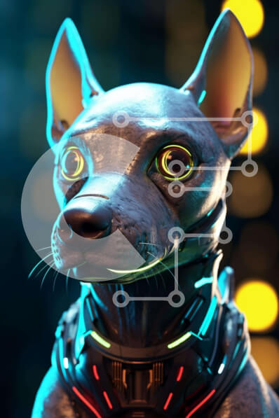 Intra Συλλεκτικό Ξύλινο Παζλ Plywood 4mm - Ψηφιακά αποδομένος σκύλος με λαμπερά μάτια και φώτα νέον Σε Ξύλινο Κουτί - Διαστάσεις: 10x10 cm – 25 κομμάτια