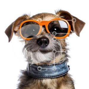 Intra Συλλεκτικό Ξύλινο Παζλ Plywood 4mm - Αξιολάτρευτο καφέ και λευκό σκυλί με πορτοκαλί γυαλιά ηλίου Σε Ξύλινο Κουτί - Διαστάσεις: 10x10 cm – 25 κομμάτια