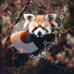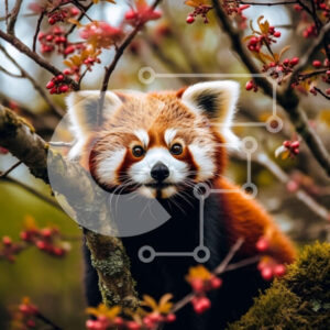 Intra Συλλεκτικό Ξύλινο Παζλ Plywood 4mm - Αξιολάτρευτο κόκκινο Panda που κάθεται σε ένα κλαδί δέντρου με κόκκινα μούρα Σε Ξύλινο Κουτί - Διαστάσεις: 10x10 cm – 25 κομμάτια