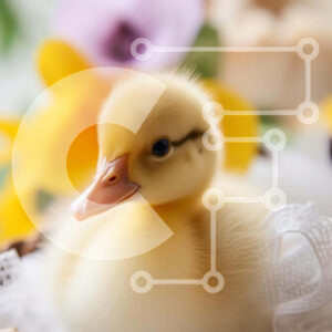 Intra Συλλεκτικό Ξύλινο Παζλ Plywood 4mm - Αξιολάτρευτο κίτρινο παπάκι σε ένα καλάθι με λουλούδια Σε Ξύλινο Κουτί - Διαστάσεις: 10x10 cm – 25 κομμάτια