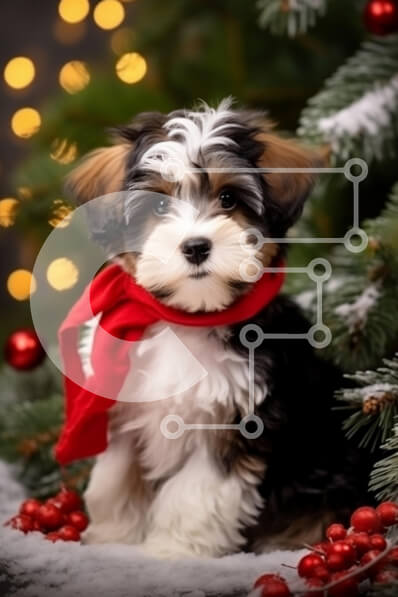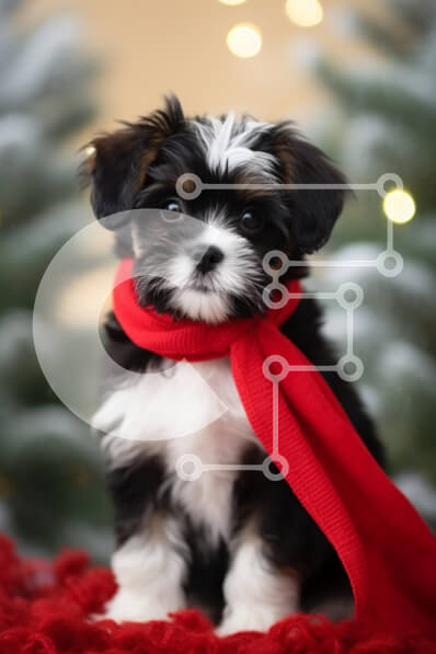 Intra Συλλεκτικό Ξύλινο Παζλ Plywood 4mm - Αξιολάτρευτο κουτάβι σε εορταστικό σκηνικό με κόκκινο φουλάρι Σε Ξύλινο Κουτί - Διαστάσεις: 10x10 cm – 25 κομμάτια
