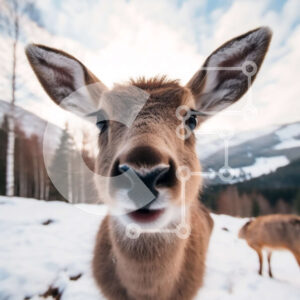 Intra Συλλεκτικό Ξύλινο Παζλ Plywood 4mm - Άποψη από κοντά του προσώπου ενός ελαφιού στο χιονισμένο ορεινό τοπίο Σε Ξύλινο Κουτί - Διαστάσεις: 10x10 cm – 25 κομμάτια