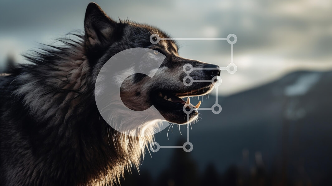 Intra Συλλεκτικό Ξύλινο Παζλ Plywood 4mm - Άποψη προφίλ ενός λύκου ενάντια σε ένα κυκλοθυμικό τοπίο Σε Ξύλινο Κουτί - Διαστάσεις: 10x10 cm – 25 κομμάτια