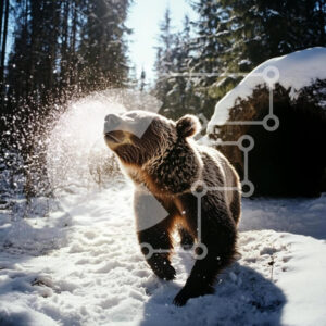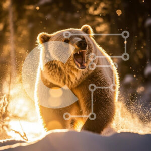 Intra Συλλεκτικό Ξύλινο Παζλ Plywood 4mm - Αρκούδα Grizzly που βρυχάται στο χιονισμένο τοπίο Σε Ξύλινο Κουτί - Διαστάσεις: 10x10 cm – 25 κομμάτια