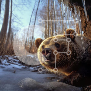 Intra Συλλεκτικό Ξύλινο Παζλ Plywood 4mm - Αρκούδα Grizzly που αναδύεται από τη σπηλιά το χειμώνα Σε Ξύλινο Κουτί - Διαστάσεις: 10x10 cm – 25 κομμάτια