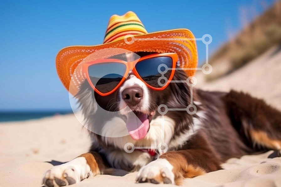 Intra Συλλεκτικό Ξύλινο Παζλ Plywood 4mm - Happy Dog on the Beach με πορτοκαλί καπέλο και γυαλιά ηλίου Σε Ξύλινο Κουτί - Διαστάσεις: 10x10 cm – 25 κομμάτια