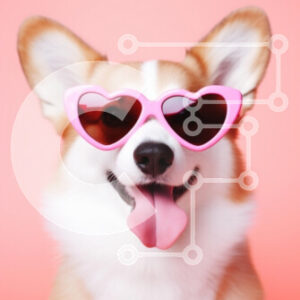 Intra Συλλεκτικό Ξύλινο Παζλ Plywood 4mm - Happy Corgi με γυαλιά ηλίου σε σχήμα καρδιάς Σε Ξύλινο Κουτί - Διαστάσεις: 10x10 cm – 25 κομμάτια