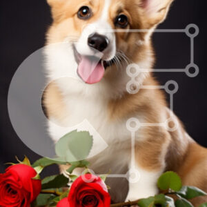 Intra Συλλεκτικό Ξύλινο Παζλ Plywood 4mm - Happy Corgi με κόκκινα τριαντάφυλλα Σε Ξύλινο Κουτί - Διαστάσεις: 10x10 cm – 25 κομμάτια