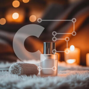Intra Συλλεκτικό Ξύλινο Παζλ Plywood 4mm - Μπουκάλι αρώματος με κεριά σε ένα σκούρο ξύλινο τραπέζι Σε Ξύλινο Κουτί - Διαστάσεις: 10x10 cm – 25 κομμάτια