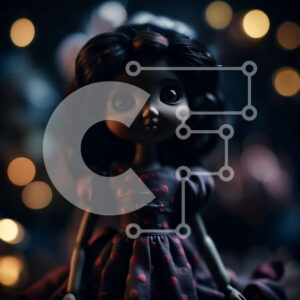Intra Συλλεκτικό Ξύλινο Παζλ Plywood 4mm - Όμορφη κινηματογράφηση σε πρώτο πλάνο με το πρόσωπο της κούκλας που φορά ένα κόκκινο πουά φόρεμα Σε Ξύλινο Κουτί - Διαστάσεις: 10x10 cm – 25 κομμάτια