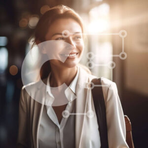 Intra Συλλεκτικό Ξύλινο Παζλ Plywood 4mm - Όμορφη εικόνα της χαμογελαστής γυναίκας με τη μαύρη τσάντα μπροστά από το παράθυρο Σε Ξύλινο Κουτί - Διαστάσεις: 10x10 cm – 25 κομμάτια