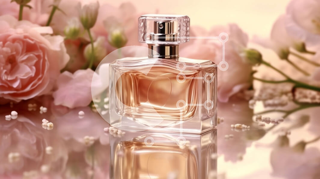 Intra Συλλεκτικό Ξύλινο Παζλ Plywood 4mm - Ρομαντικό μπουκάλι αρώματος που περιβάλλεται από ροζ τριαντάφυλλα Σε Ξύλινο Κουτί - Διαστάσεις: 10x10 cm – 25 κομμάτια