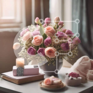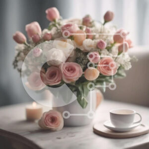 Intra Συλλεκτικό Ξύλινο Παζλ Plywood 4mm - Ρομαντικό τραπέζι με ροζ και ροδακινί τριαντάφυλλα Σε Ξύλινο Κουτί - Διαστάσεις: 10x10 cm – 25 κομμάτια