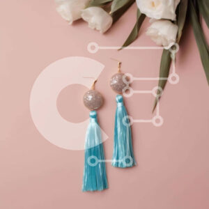 Intra Συλλεκτικό Ξύλινο Παζλ Plywood 4mm - Σκουλαρίκια με φούντα γαλάζιο με ασημί τόνους σε ροζ φόντο Σε Ξύλινο Κουτί - Διαστάσεις: 10x10 cm – 25 κομμάτια